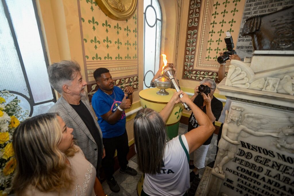 A Praça General Labatut, no bairro de Pirajá, foi mais uma vez nesta terça-feira (1º) palco da tradicional chegada do Fogo Simbólico a Salvador, cerimônia cívica que marca o início das comemorações do 2 de Julho na capital baiana. A chama chegou pelas mãos da atleta máster Lucy dos Santos, vinda da cidade de Simões Filho, responsável pelo acendimento da Pira localizada no Panteão de Pirajá.