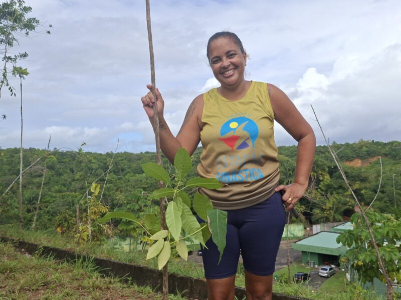 “Graças à ação proposta pelo Governo do Estado, plantei, na manhã desta terça-feira, a primeira árvore da minha vida.” O relato é de Kátia Fernandes, 48 anos, moradora do bairro de Patamares e aluna do projeto social Estação Ginástica, desenvolvido pela Superintendência dos Desportos do Estado da Bahia (Sudesb), autarquia da Secretaria do Trabalho, Emprego, Renda e Esporte (Setre).