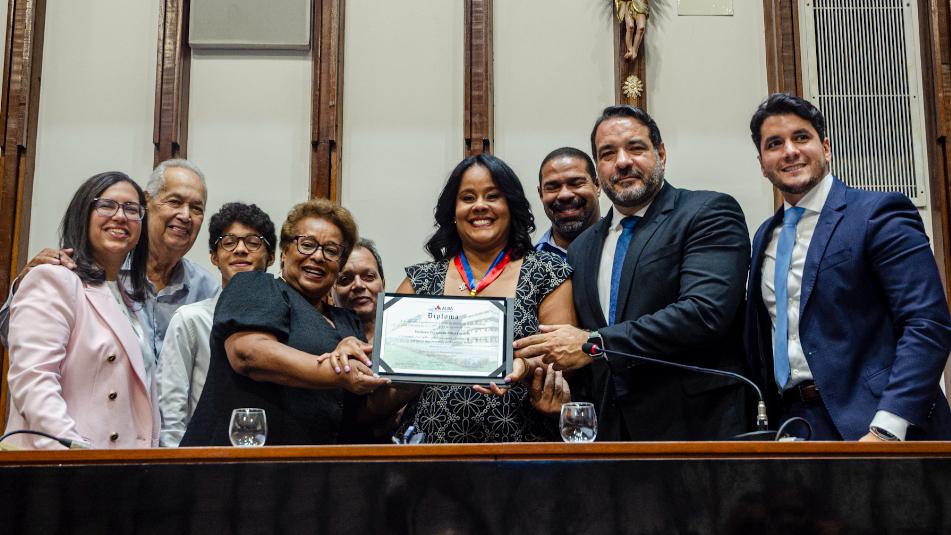 Autoridades, parentes, colegas de trabalho, alunos e amigos da secretária municipal de Políticas para Mulheres, Infância e Juventude da cidade de Salvador, Fernanda Silva Lordêlo, lotaram o plenário da Assembleia Legislativa da Bahia (ALBA), nesta terça-feira (7), para assisti-la ser homenageada com a outorga da Comenda 2 de Julho. A seção especial de entrega da honraria foi presidida pelo deputado proponente, Alan Sanches (UB), líder da minoria na Casa.
