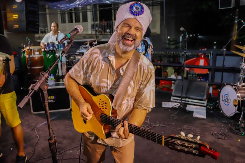 O músico Alexandre Leão desfila no Circuito Osmar (Campo Grande) nesta sexta-feira (9), tendo como convidado o cantor Targino Gondim, e cantando sucessos do Axé Music e do forró para um público muito animado. Grande parte dos foliões já acompanham o artista em seus ensaios no Rio Vermelho e capricharam nas roupas e fantasias, seguindo o trio em direção à Av. Sete de Setembro.