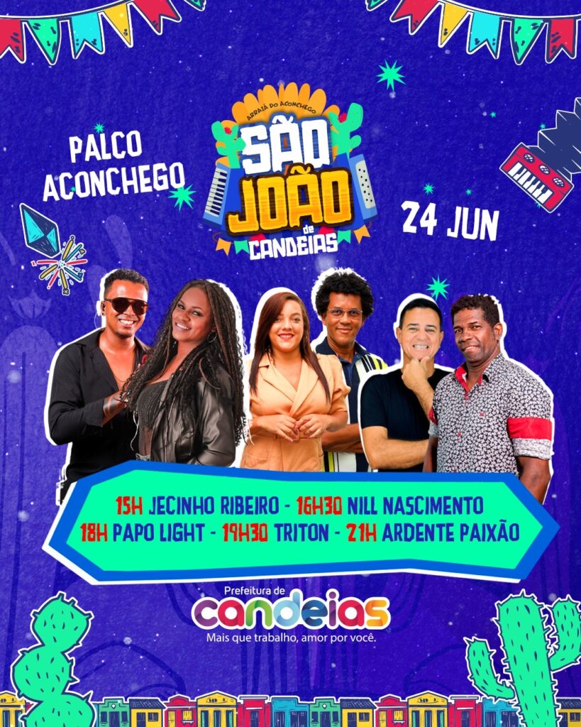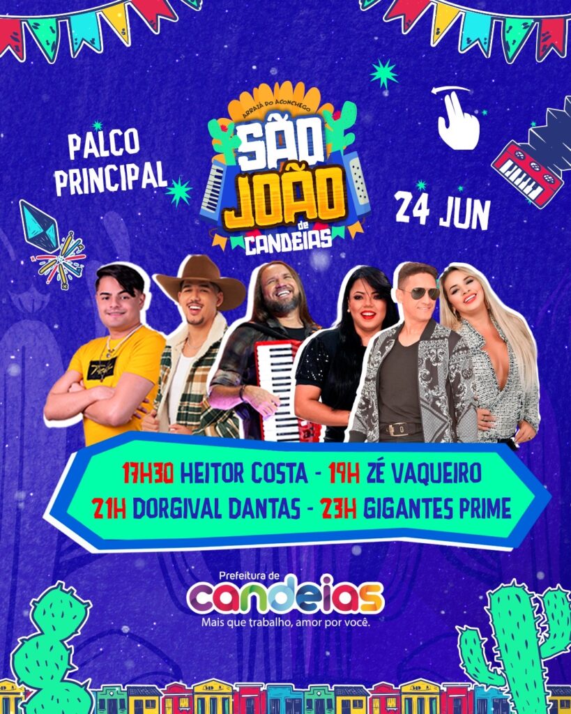O São João de Candeias, encerra suas festividades nesta segunda-feira, 24 de junho, com uma programação recheada de atrações musicais. Grandes nomes do cenário nacional, como Heitor Costa, Zé Vaqueiro e Dorgival Dantas, prometem agitar o público no último dia do Arraiá do Aconchego.