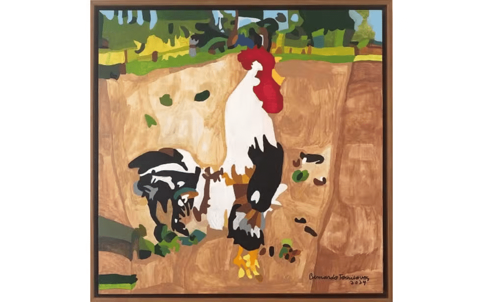 A oportunidade surgiu após uma exposição na cidade do Porto, em Portugal, no Dama Art Gallery, onde quadro “Galo no Sítio” foi escolhido para concorrer ao Prêmio Dama de Ouro Salão de Arte 2024. Ao todo, foram 41 artistas selecionados pela curadora Cristina Bernardini. As votações vão até o dia 16 de janeiro e podem ser feitas pela internet.