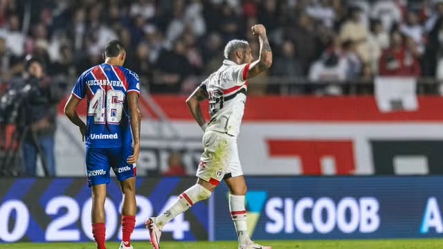 O São Paulo deixou para trás o momento de turbulência e confirmou a reação neste domingo ao vencer o Bahia por 3 a 1, no Morumbis, em jogo da 13ª rodada no Campeonato Brasileiro. A segunda vitória consecutiva dos são-paulinos foi construída com boa atuação dos atacantes: Calleri, Ferreira e Luciano marcaram para os donos da casa. O Bahia tentou reagir no segundo tempo, mas parou no gol de Gilberto e viu os donos da casa dominarem o confronto.