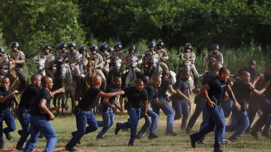 De acordo com ele, além da preparação do efetivo, atividades como essa também buscam dar mais tranquilidade aos animais, diminuindo a reação deles a possíveis gritarias e bombas que possam ocorrer: “cada cavalo aqui tem a sua carga. Cada policial é responsável por cada cavalo e existe uma intimidade entre eles, a relação é uma relação de carinho, de amor. A intenção é colocar cada dupla em condição de realizar o policiamento montado. Justamente a prática da instrução, o treinamento. E a gente costuma dizer que o treino é difícil, o jogo é fácil”.