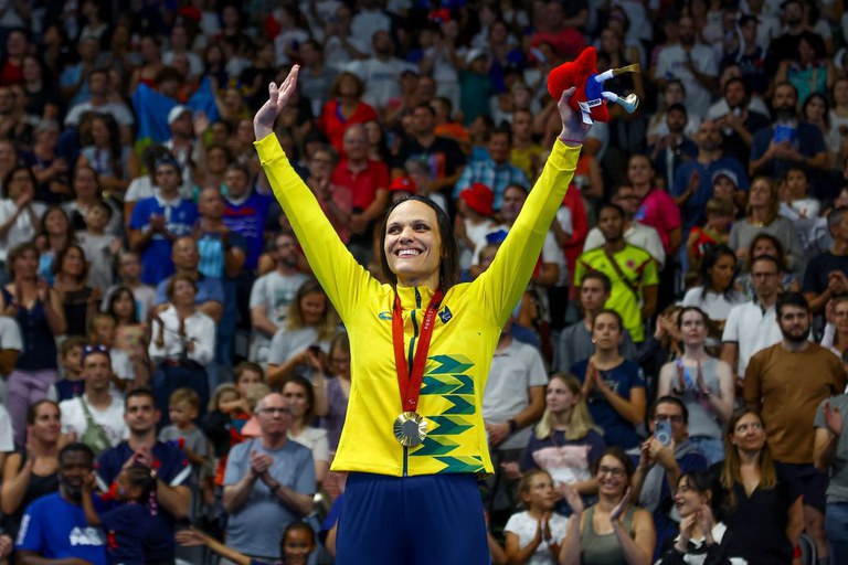 Pelo segundo dia consecutivo, o Brasil conquistou dez medalhas em Paris. Três delas fizeram com que nossos esportistas recebessem suas láureas no lugar mais alto do pódio: na natação, com Carol Santiago levando o ouro nos 100m costas S12 (deficiência visual) e Gabriel Araújo, o Gabrielzinho, fazendo o mesmo nos 50m costas, na classe S2 (limitações físico-motoras); e, no atletismo, com Fernanda Yara, nos 400m T47 (deficiência nos membros superiores).