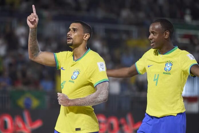 Itália não tinha o que fazer a não ser se arriscar no ataque. Em uma dividida de Bertacca com o goleiro Bobô, a bola estava a caminho do gol, mas Rodrigo apareceu para salvar em cima da linha. E Rodrigo apareceu também no ataque, ao arrancar pela direita, puxar para o meio e chutar para fazer o sexto gol verde e amarelo.