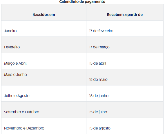 Ao todo, a Caixa Econômica Federal liberará pouco mais de R$ 4,4 bilhões neste mês. Aprovado no fim do ano passado, o calendário de liberações segue o mês de nascimento do trabalhador. Os pagamentos começaram em 17 de fevereiro e vão até 15 de agosto. O trabalhador pode conferir a situação do benefício no aplicativo Carteira de Trabalho Digital.