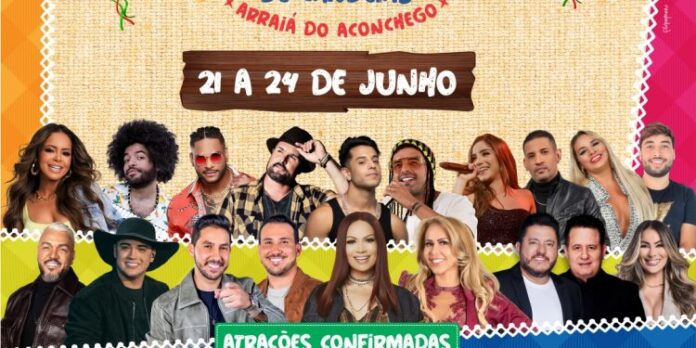 Os shows acontecerão na Arena Arraiá do Aconchego, no Centro de Abastecimento, e serão divididos no palco principal e no caramanchão (palco exclusivo para os artistas locais), além de apresentações culturais de Quadrilhas Juninas.