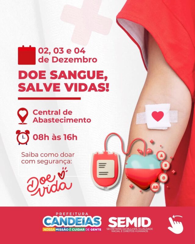 A Secretaria da Mulher, Direitos Humanos e Igualdade Racial (SEMID) vai realizar uma campanha para incentivar a doação de sangue e reforçar os estoques do HEMOBA durante o período de festas.