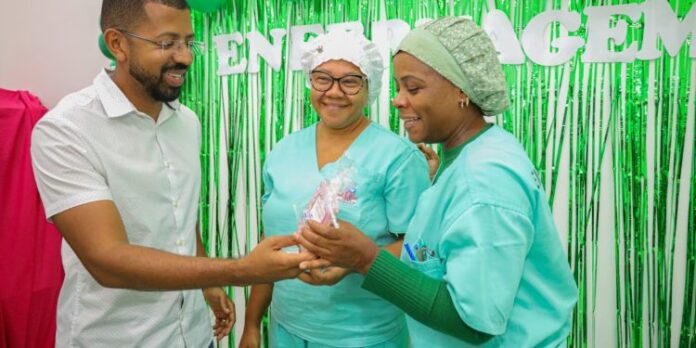 No hospital, a coordenadora de enfermagem, Izabela Brasileiro, leu uma mensagem motivacional que ressaltava a importância do trabalho dos profissionais nas unidades de saúde.