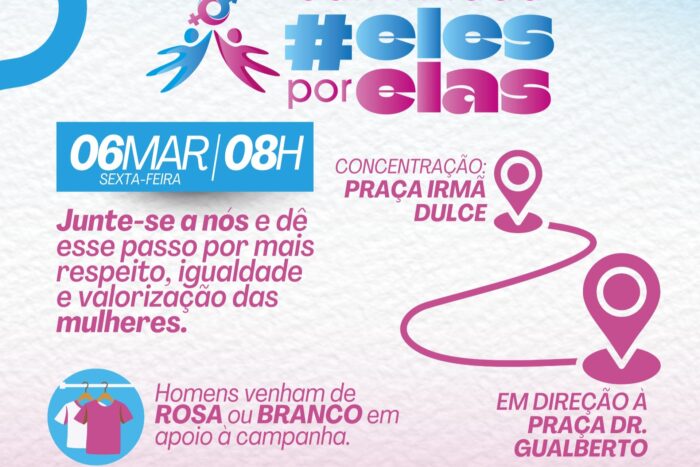 Em alusão às comemorações do 8 de Março, Dia Internacional da mulher, é que a Prefeitura de Candeias, por meio da Secretaria da Mulher, Igualdade Racial e Direitos Humanos (SEMID), vai realizar a 1ª caminhada “Eles por Elas”.