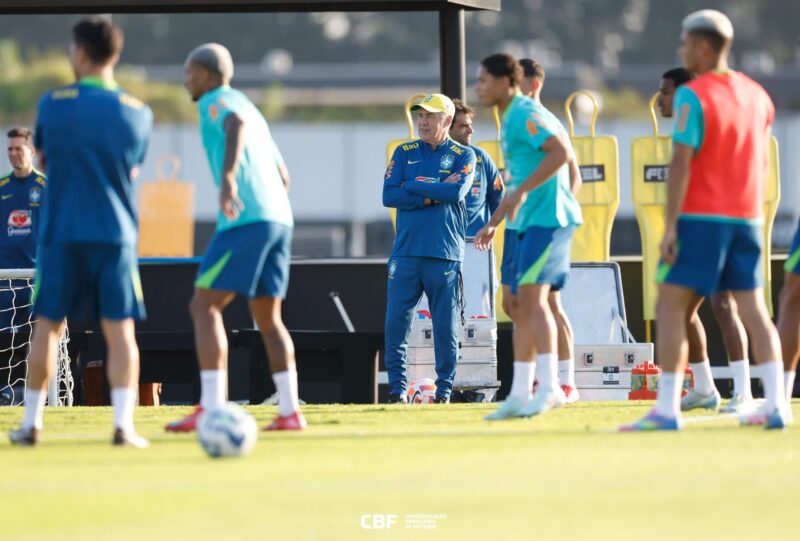 O técnico Carlo Ancelotti comandou na tarde desta segunda-feira (2), no CT Joaquim Grava, em São Paulo, seu primeiro treino à frente da Seleção Brasileira. A atividade abriu a preparação da Amarelinha para as partidas contra Equador e Paraguai, pelas Eliminatórias da Copa do Mundo de 2026.