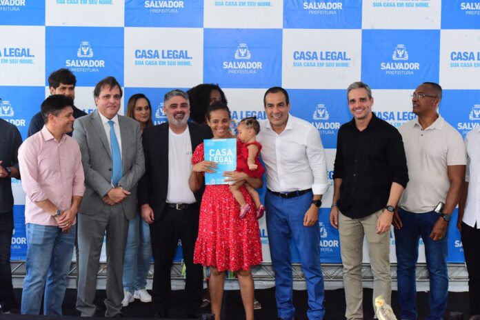 A Prefeitura de Salvador entregou, nesta quarta-feira (11), 1.952 títulos de propriedade a moradores do Alto do Coqueirinho, por meio do programa Casa Legal, que promove a regularização fundiária de áreas urbanas da capital baiana. A cerimônia contou com as presenças do prefeito Bruno Reis e do corregedor-geral de Justiça da Bahia, desembargador Roberto Maynard Frank, dentre outras autoridades e os próprios beneficiários.
