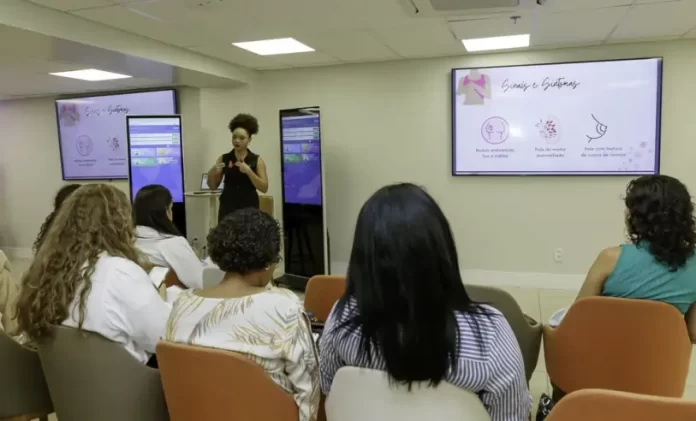 “Isso tudo está relacionado à qualidade de vida no trabalho, na empresa dela. Tivemos o atendimento com uma psicóloga, uma estudante de medicina falou sobre a prevenção do câncer de mama, que é o tema principal, e outra empresa proporcionou a experiência com massagem”, explicou.