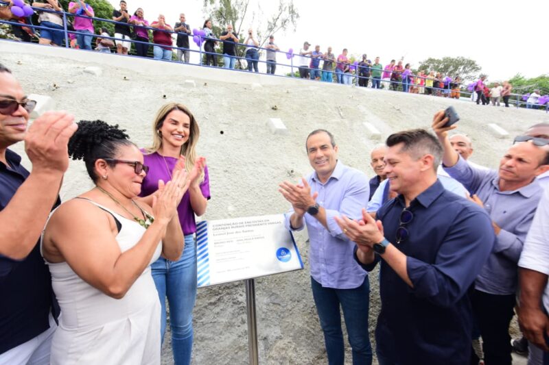 A Prefeitura de Salvador inaugurou nesta segunda-feira (8) uma nova contenção de encosta na Rua São Francisco Xavier, no bairro de Granjas Rurais Presidente Vargas. Com investimento de R$1,2 milhão, a intervenção foi entregue pelo prefeito Bruno Reis e pelo secretário de Infraestrutura e Obras Públicas (Seinfra), Luiz Carlos de Souza, para trazer mais segurança e tranquilidade para cerca de 30 famílias cujas casas estão próximas ao talude.