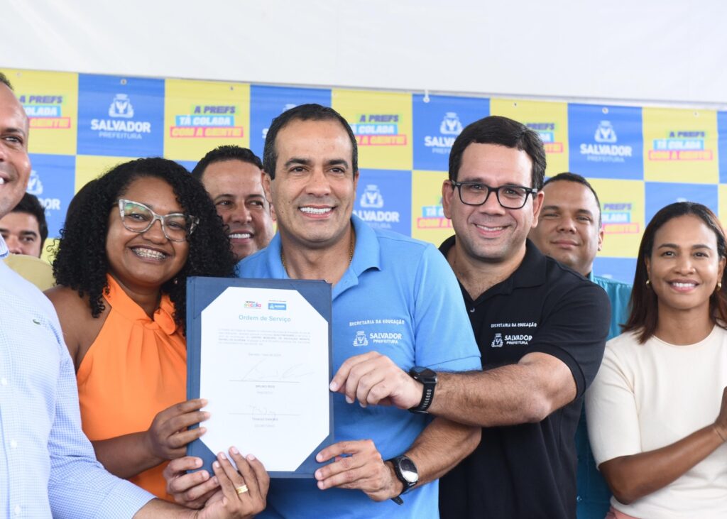 A Prefeitura de Salvador iniciou nesta terça-feira (7) a reconstrução do Centro Municipal de Educação Infantil (Cmei) Rafael de Oliveira, em Cajazeiras VIII. A ordem de serviço para início imediato das intervenções, que terão investimento de R$10,5 milhões, foi assinada pelo prefeito Bruno Reis e pelo secretário municipal da Educação (Smed), Thiago Dantas, em ato com a participação de autoridades e comunidade escolar.