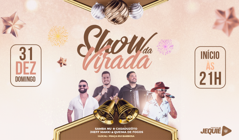 Jequieenses e visitantes irão celebrar a virada de 2023 para 2024 em praça pública, com shows e fogos de artifício. A Prefeitura de Jequié, através da Secretaria de Cultura e Turismo, preparou, este ano, uma programação alusiva aos festejos de Réveillon para a população. O evento será gratuito e acontecerá no domingo, 31, na Praça Rui Barbosa, com atrações musicais que animarão o público e o planejamento logístico contará com suporte da Secretaria de Saúde e apoio operacional da Guarda Municipal, 8º Grupamento do Corpo de Bombeiros e 19º Batalhão de Polícia Militar.