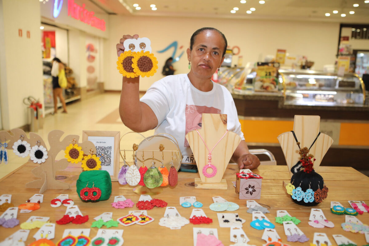 Profissão – Priscila Mata, de 37 anos, gostou de estar comercializando as peças dela em um shopping do Centro. “Eu já apresentei o meu trabalho em outras feiras de rua, mas gostei muito de estar aqui em um shopping, no Centro da cidade, porque as pessoas param e apreciam mais. Eu acredito que a divulgação do trabalho também fica ampliada pelo prestígio que um centro de compras tem. Muitas vezes eu gravo aqui e posto no Instagram. As pessoas comentam: ‘Tá crescendo’, ‘O negócio dela está ficando importante’. E às vezes, quando a loja fica nessa vibe de crescimento, as pessoas querem mais, porque fica em evidência, então desenvolve bastante o trabalho, a loja cresce e ganha mais visibilidade”, opinou.