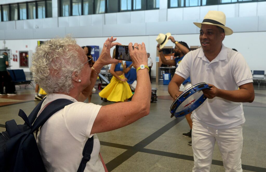 “Não Deixe o Samba Morrer” – Ainda no aeroporto, além da estrutura de recepção, a Prefeitura também organizou uma despedida temática, levando música e emoção para quem estava partindo. A iniciativa buscou prolongar o clima da festa até o último momento.