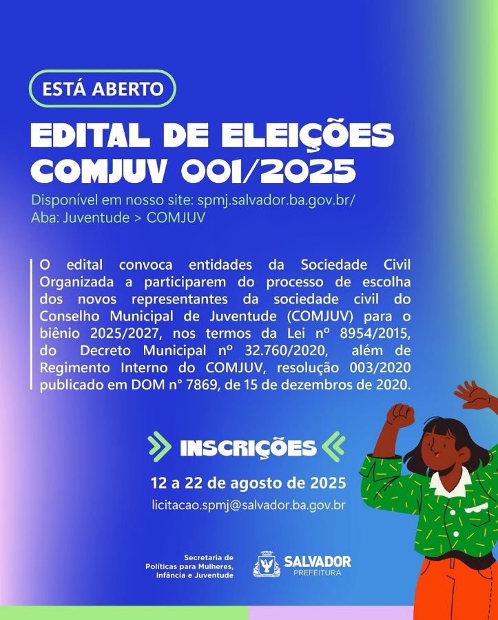 Vinculado à Secretaria Municipal de Políticas para Mulheres, Infância e Juventude (SPMJ), o Comjuv é um espaço de participação social que permite aos jovens contribuírem diretamente para a formulação de políticas públicas em Salvador.