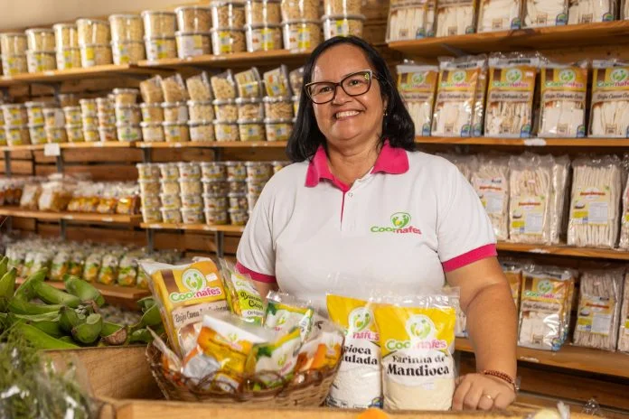 Na Cooperativa Feminina da Agricultura Familiar e Economia Solidária de Valença (Coomafes), a história de evolução das 102 mulheres cooperadas é liderada pela presidente Maria Joselita Santos, mais conhecida como Branca. A gestora pontua os avanços da cooperativa a partir dos investimentos. “As ações contribuíram para a formação das cooperadas, o melhoramento das embalagens dos produtos e a aquisição de equipamentos como freezers, fornos e assadeiras. Tudo isso fez com que a nossa produção e comercialização aumentasse”, conta ela.