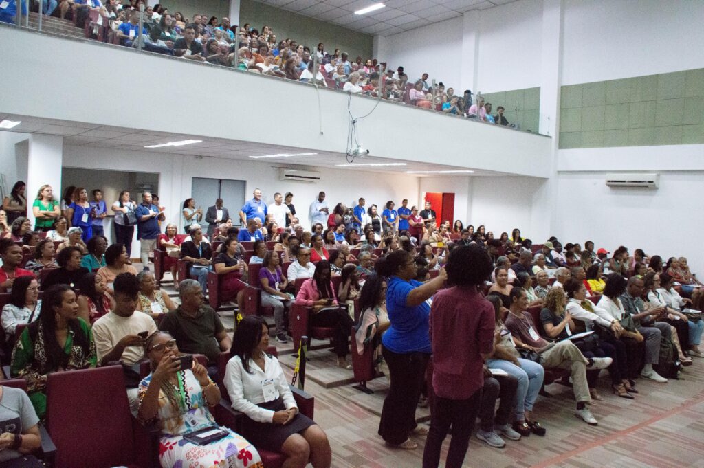Ao som da Orquestra Neojiba Lauro de Freitas, os conferencistas da 15ª Conferência Municipal de Assistência Social deram início, na tarde desta quinta-feira (7/8), ao evento social mais aguardado do ano. Promovido pela Prefeitura de Lauro de Freitas, por meio da Secretaria Municipal de Desenvolvimento Social e Cidadania (SEMDESC), a iniciativa segue até esta sexta-feira (8/8), no auditório do Instituto Federal da Bahia (IFBA) – Campus Lauro de Freitas, localizado na Rua São Cristóvão, bairro de Itinga.
