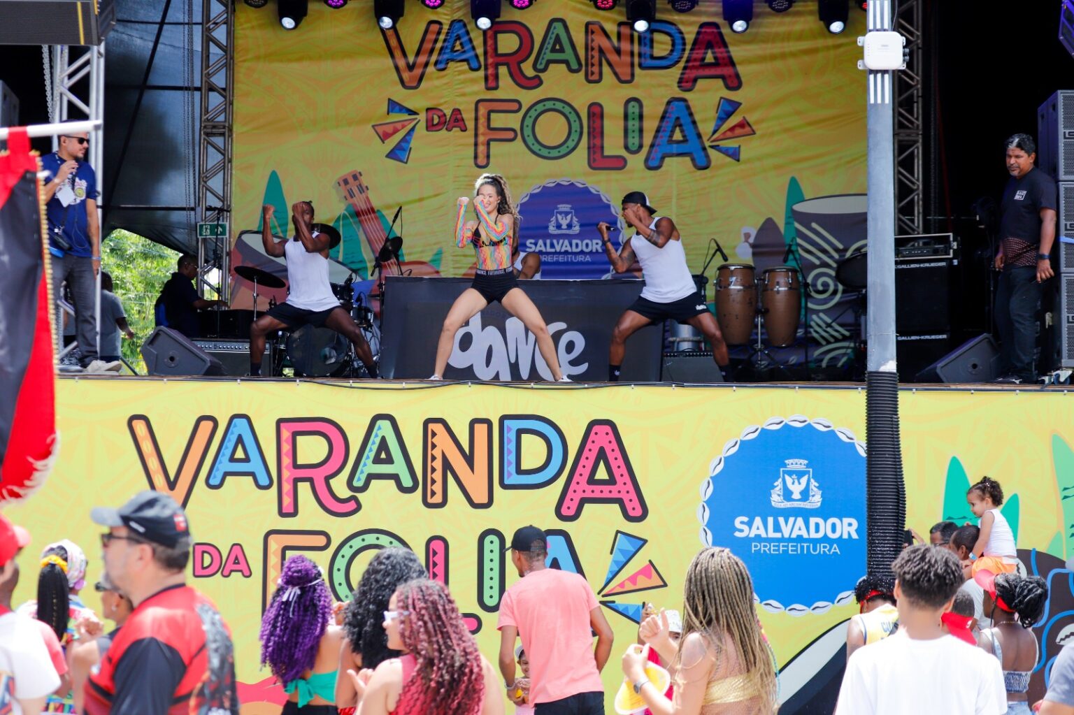Programação – A Varanda da Folia abriu a segunda-feira (12) de Carnaval com show do FitDance. O grupo apresentou um vibrante repertório de coreografias para os foliões. A grade ainda teve o cantor Gerônimo, ícone da música baiana, que levou para o palco hinos carnavalescos.