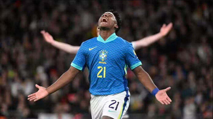 Endrick Felipe Moreira de Sousa. Aos 17 anos, a joia da Seleção Brasileira mostrou estrela mais uma vez. Bastaram pouco minutos em campo para anotar o seu primeiro gol pelo Brasil. E não foi num palco qualquer: diante da Inglaterra, em Wembley, sendo determinante para a vitória por 1 a 0, neste sábado. Um belo pontapé inicial na sua trajetória e na de Dorival Júnior, que estreou no cargo de técnico tirando a Canarinho de uma sequência de quatro jogos sem vitória.