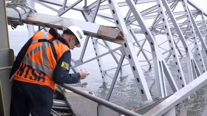 Um vídeo divulgado pela Guarda Costeira dos Estados Unidos mostra o momento em que a equipe inicia a retirada de uma viga de aço para poder remover a estrutura destruída pelo impacto.