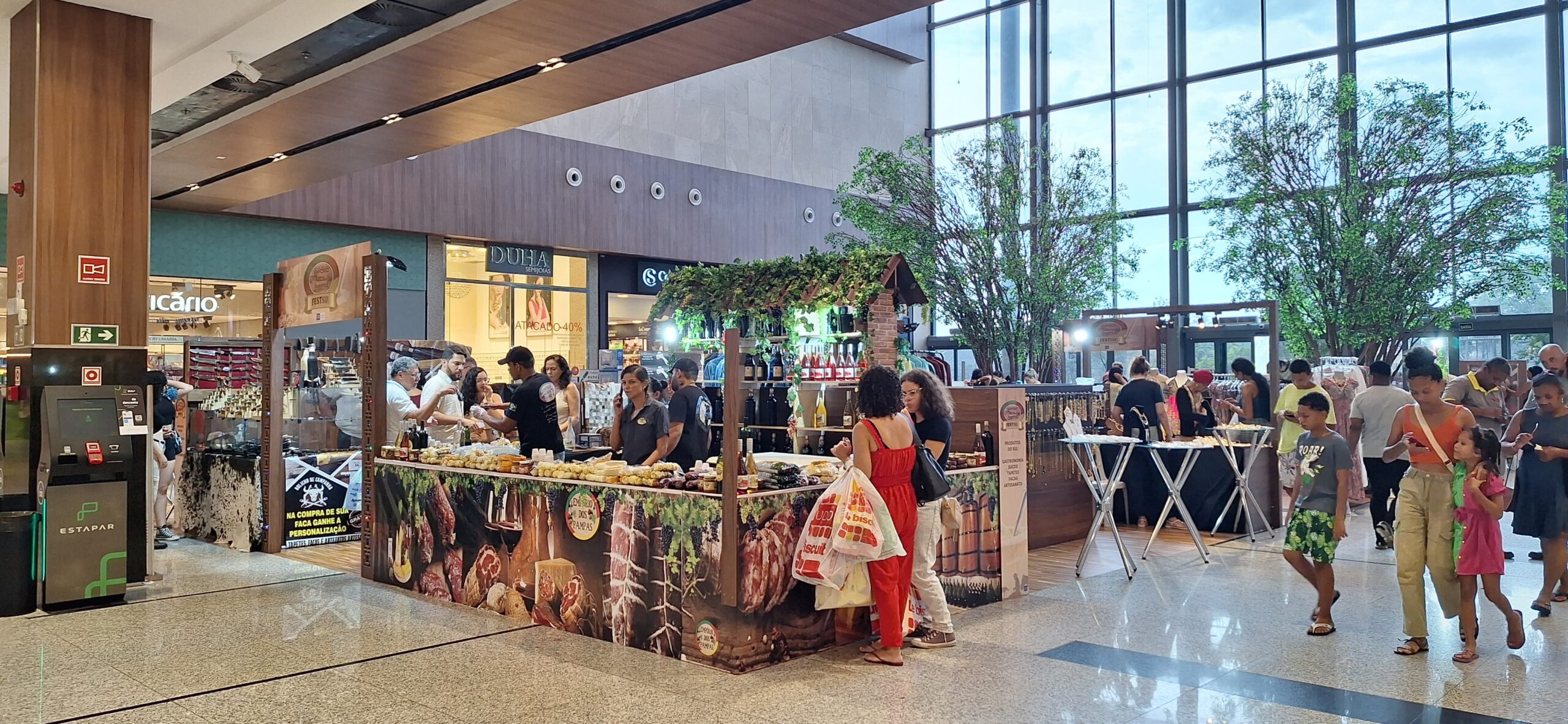 São 10 estandes com uma variedade de itens, como confecções do Rio Grande do Sul, acessórios e semijoias com pedras brasileiras, além de tapeçaria da região. O público também pode conferir o melhor da gastronomia gaúcha, como vinhos, salames, queijos e doces.