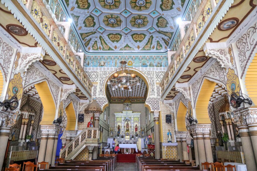 A fachada da igreja mantém a arquitetura neogótica com a qual foi criada, porém o seu interior segue esse estilo, que é único no país. A adaptação ocorreu já no Século XX, após uma reforma, por escolha dos párocos da época. A igreja, inclusive, possui inscrições em árabe no seu interior, louvando a Jesus Cristo.