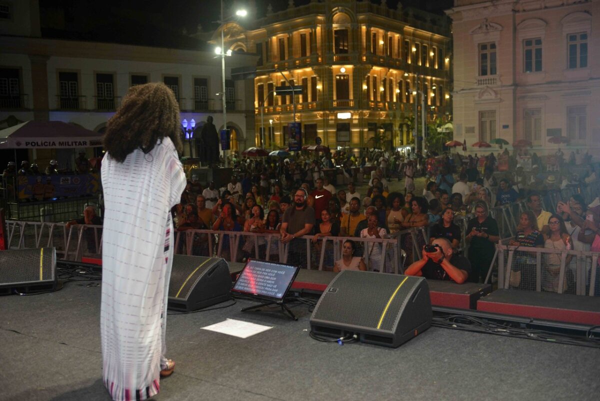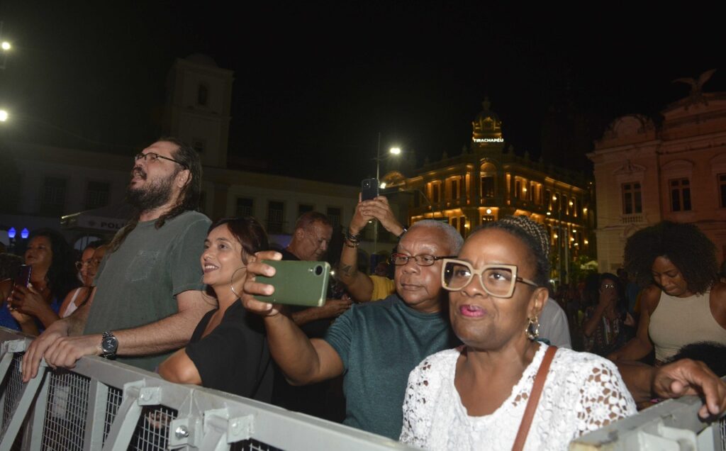 Ela contou que foi ao Pelourinho resolver questões de trabalho e, ao ver a movimentação, se interessou pela programação. “Vi o palco, fui pra internet, achei uma postagem da Prefeitura e descobri que ia ter show. Resolvi ficar pra dar uma olhadinha. E aí conheci uma amiga aqui, já fiz amizade e vou curtir um pouquinho.”