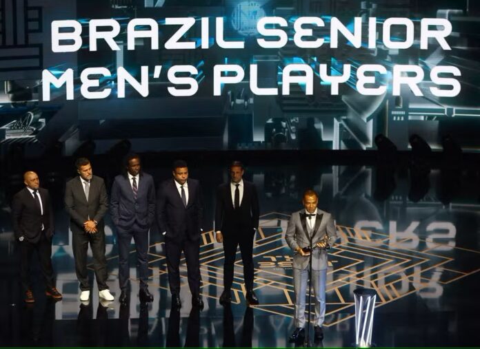 Subiram ao palco alguns ídolos da seleção brasileira, como o ex-zagueiro Roque Júnior, os ex-laterais Cafu e Roberto Carlos. Coube ao capitão do Penta receber o troféu e fazer o discurso como representante da Seleção.