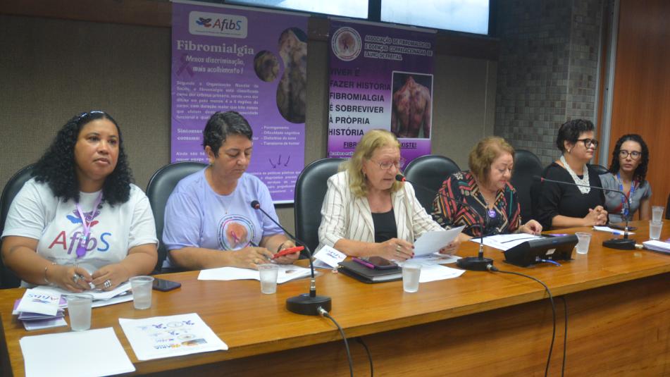 Fibromialgia: diretrizes para o atendimento que será prestado pelo SUS, desafios e perspectivas para a garantia do acesso à saúde. Este foi o tema do fórum de debate, realizado durante esta segunda-feira (4), nas salas Herculano Menezes e Luís Cabral, lotadas de autoridades, dirigentes de associações e de mulheres que levaram cartazes e banners expressando a dor que sentem com essa doença invisível, mas de dor real. “Você está ótima, nem parece que tem doença crônica. Conheça, respeite, divulgue. Nossa maior dor é o preconceito”, diz a mensagem.