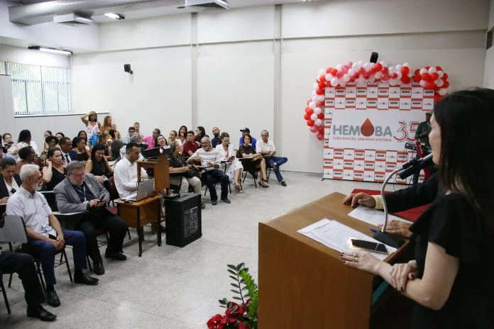 Com a missão de coordenar a Política de Sangue, assegurar a oferta de sangue e componentes, além de prestar assistência em hematologia e hemoterapia à população da Bahia, a Fundação Hemoba celebrou, nesta segunda-feira (9), o aniversário de 35 anos. A cerimônia comemorativa foi realizada no auditório do Hemocentro Coordenador, em Salvador, com a presença de colaboradores, diretores, doadores e pacientes que ajudaram a construir a história da instituição. Entre os convidados, estavam o fundador e primeiro diretor-geral da instituição, Aurelino Santana; o chefe de gabinete da Secretaria de Saúde da Bahia (Sesab), Cícero de Andrade, representando a secretária da pasta, Roberta Santana; e representantes da Associação Baiana dos Hemofílicos e da Associação Baiana das Pessoas com Doença Falciforme.