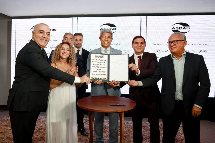 O governador Jerônimo Rodrigues assinou, na noite desta quarta-feira (13), a revitalização do decreto 7.799/2000, que visa garantir mais competitividade às empresas baianas. A assinatura aconteceu durante evento promovido, em Salvador, pela Associação dos Agentes de Distribuição da Bahia (Asdab) e pelo Sindicato do Comércio Atacadista e Distribuidores de Gêneros Alimentícios do Estado (Sindatacado). A atualização do decreto, que será publicada no Diário Oficial desta quinta-feira (14), passa a valer a partir do dia 1º de janeiro de 2024. Na ocasião, o governador e o secretário estadual da Fazenda (Sefaz-BA), Manoel Vitório, foram homenageados por empresários do setor de abastecimento pelo apoio ao canal de distribuição, abastecimento e varejo da Bahia.