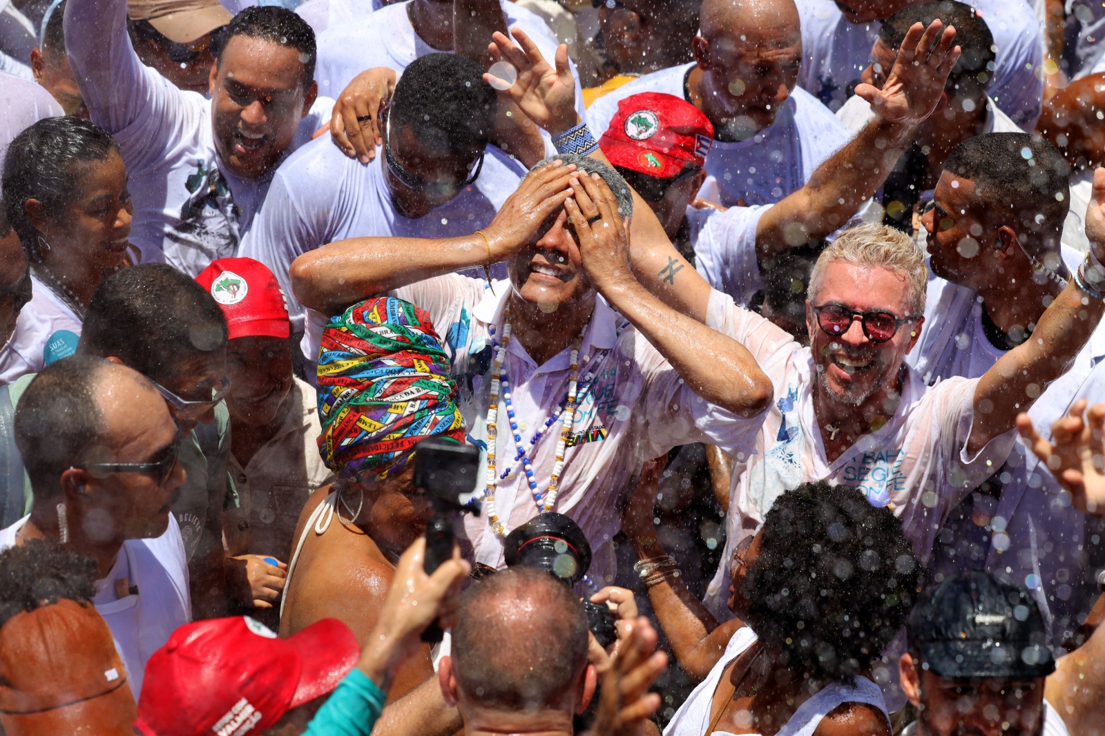 Depois de percorrer os oito quilômetros de muita fé e devoção, na manhã desta quinta-feira (15), o governador Jerônimo Rodrigues concluiu o cortejo da tradicional Lavagem do Senhor do Bonfim ao chegar ao adro da Basílica do Senhor do Bonfim, na Colina Sagrada, no início da tarde. Acompanhado do vice-governador Geraldo Júnior, secretários de Estado e outras autoridades, no alto das escadarias, Jerônimo foi recebido pelas baianas, que realizaram o tradicional banho de cheiro, um dos momentos mais simbólicos da celebração.