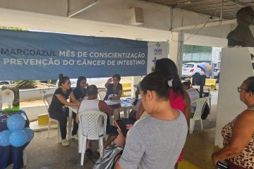 A equipe de coloproctologia do Hospital Geral Roberto Santos (HGRS) participou da campanha do Março Azul e realizou, nesta segunda-feira (25), uma ação voltada para a conscientização do câncer colorretal, que é o segundo tipo de câncer que mais acomete homens e mulheres, ficando atrás apenas do de próstata (homens) e mama (mulheres).