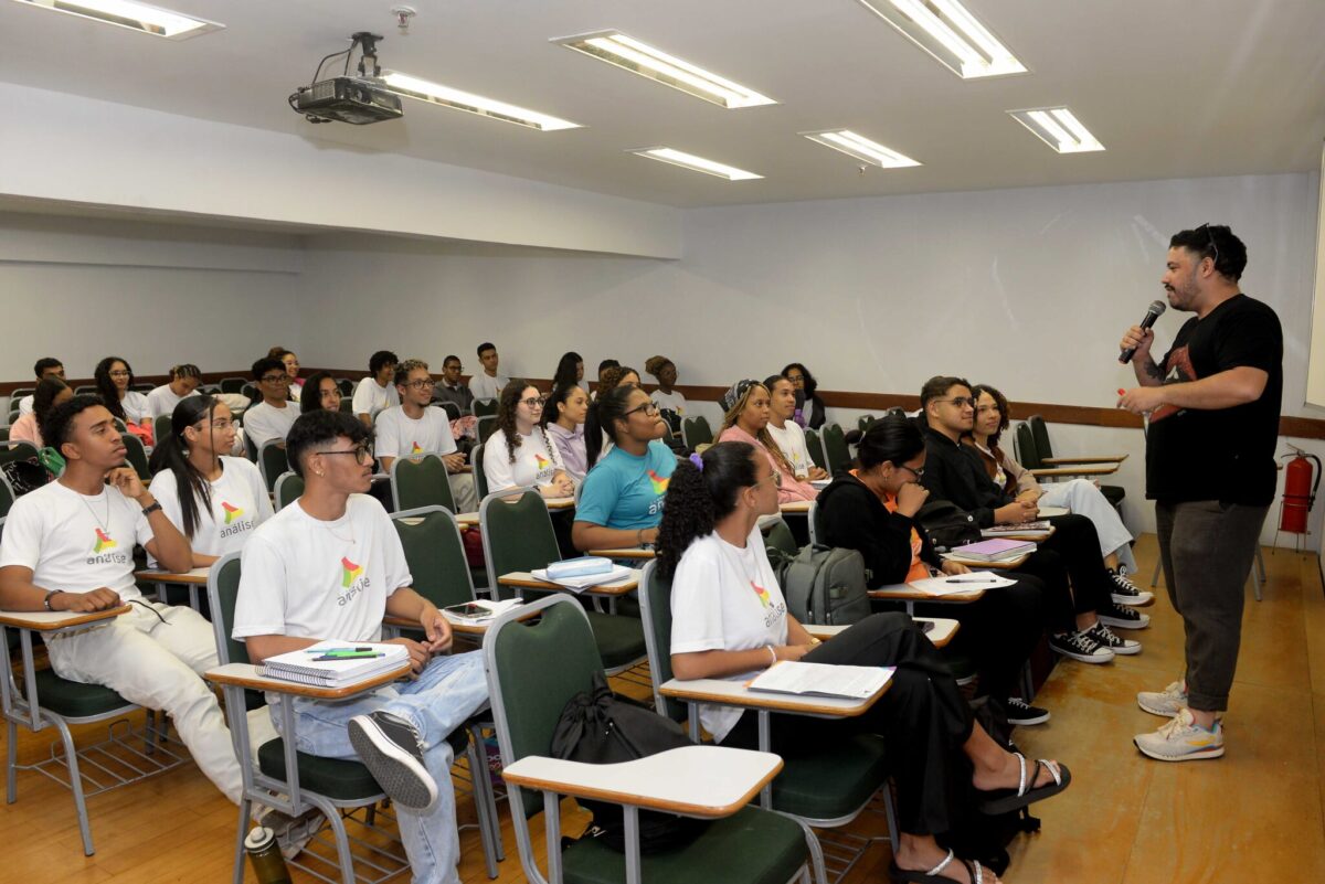 Sheyla Argôlo, diretora do Análise, explica como a iniciativa da SPMJ contribui para que alunos de baixa renda alcancem o sonho de fazer um curso superior: “O ponto principal é que o programa garante que esses estudantes lutem em condição de igualdade com todos os outros alunos aqui do curso, porque desde o material didático, os professores e toda a atenção que eles recebem, inclusive com orientação de estudos, fazem com que eles se sintam capazes de alcançar os seus objetivos”.