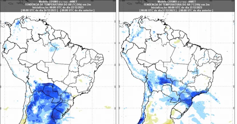 Um novo ciclone extratropical deve atingir o Sul do Brasil neste Natal, com reflexos no início da próxima semana nas regiões Sudeste e Centro-Oeste. O alerta foi feito pelo Inmet (Instituto Nacional de Meteorologia).