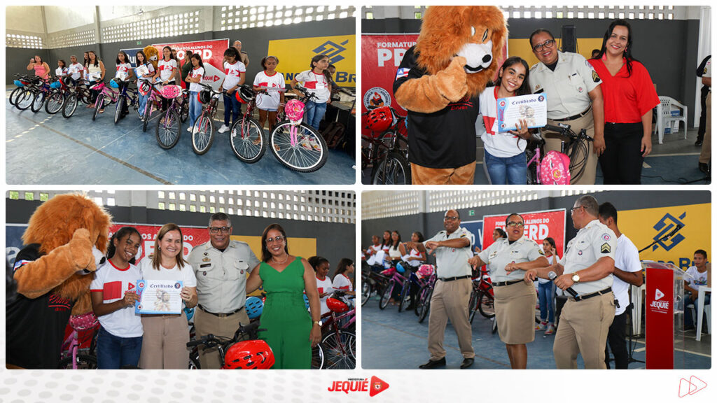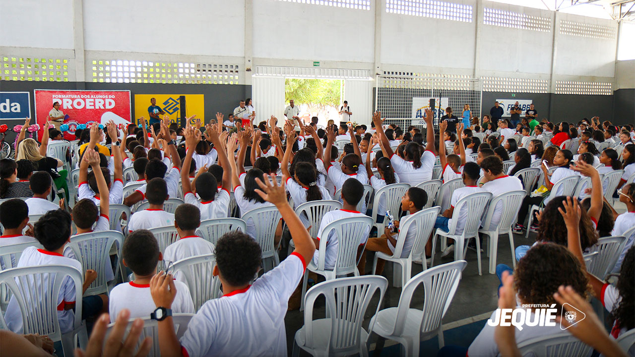 A Prefeitura de Jequié, através da Secretaria de Educação, e 19º Batalhão de Polícia Militar, promoveram na manhã desta terça-feira, 12, no espaço na Arena da Associação Atlética Banco do Brasil (AABB), a solenidade de formatura dos alunos do Sistema Municipal de Ensino que concluíram o Programa Educacional de Resistência às Drogas (PROERD). Estiveram presentes, o prefeito de Jequié, Zé Cocá; a secretária de Educação, Elvia Sampaio; a secretária de Desenvolvimento Social, Patrícia Miranda Brandão Santana; o secretário de Saúde, Marlon Pereira; o comandante do 19° Batalhão de Polícia Militar, o tenente-coronel, Márcio Amorim de Marcelo; o comandante do 8º Grupamento de Bombeiros Militar, tenente-coronel, Bruno André Fanelli Moreira; o capitão, Gerlon Mendes de Souza, chefe de Planejamento Operacional da Companhia Independente de Policiamento Especializado Central (CIPE Central); a diretora de Projetos da Secretaria de Educação, Poliane Bulhões; a professora, Fabiana Moura, representando o Conselho Municipal de Educação; e os instrutores do PROERD, os policiais militares Gerôncio Silva Barbosa, Manuel Messias Lima e Lourineia Andrade de Souza.