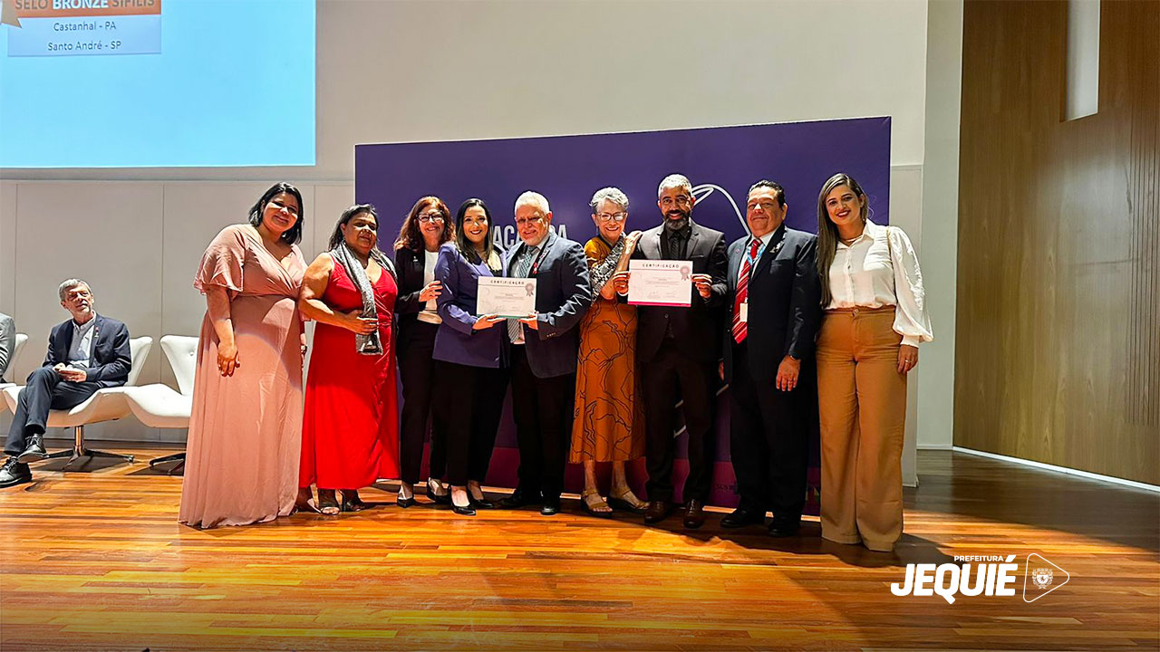 Jequié segue com as estratégias de reforço às ações de vigilância, prevenção e controle da transmissão vertical de HIV e sífilis rumo às metas de eliminação da transmissão vertical dessas doenças e, por isso, recebeu dupla certificação do Ministério da Saúde. A solenidade de reconhecimento público ocorreu na última sexta-feira, 8, no auditório do Instituto Serzedello Corrêa, em Brasília. Estiveram presentes, o secretário de Saúde, Marlon Pereira; a diretora de Vigilância Epidemiológica, Francielli Cardoso; e a diretora da Assistência a Saúde, Marisna Gomes, representando a Prefeitura de Jequié; demais gestores de Saúde de 72 municípios brasileiros.