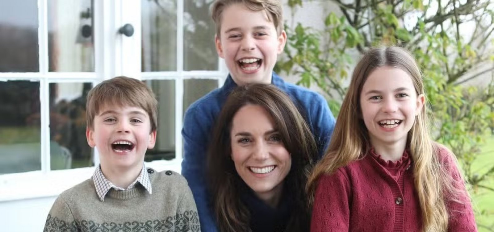 Já neste domingo, o Palácio de Kensington publicou uma foto de Kate ao lado dos filhos Louis, Charlotte e George. A princesa aparece sentada e sorridente. A fotografia foi feita pelo príncipe William.