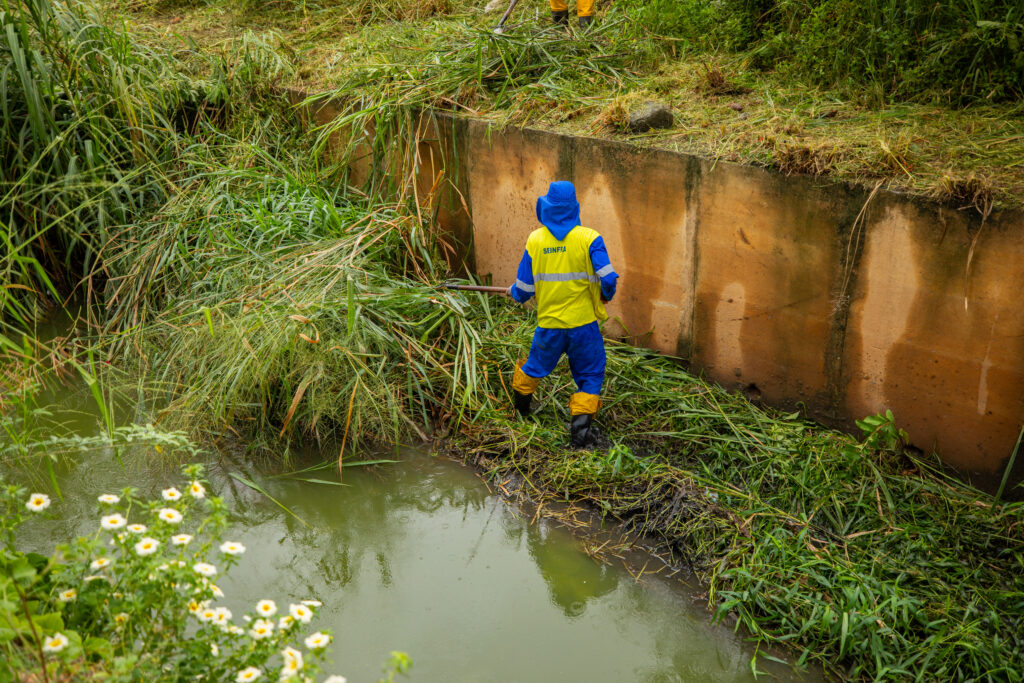 De acordo com a pasta, o serviço no canal ocorre de forma mecanizada e manual, e consiste na limpeza da tubulação, por meio da força da água, e na retirada de vegetação e resíduos acumulados, que impedem o fluxo da água.