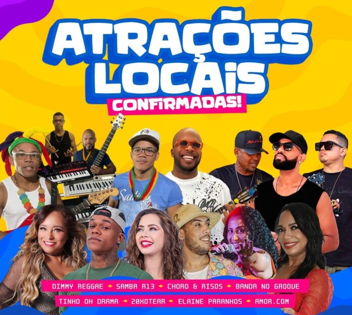 Entre os talentos confirmados estão: Dimmy Reggae, Samba A13, Choro & Risos, Banda no Groove, Tinho Oh Drama, 20Xotear, Elaine Paranhos e Amor.Com. Além de promover lazer e entretenimento, a grande representatividade dos artistas locais amplia oportunidades para movimentar a economia local e fortalecer a identidade cultural do município.