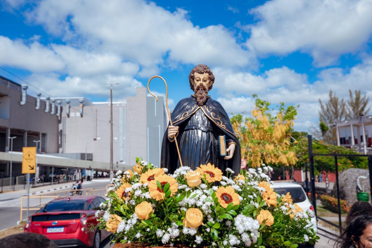 No turno da tarde o grupo levou a imagem do santo para participar da Missa da Divina Misericórdia, celebração que acontece na primeira sexta do ano na Igreja Matriz Santo Amaro de Ipitanga. A equipe peregrina visitará as paróquias da cidade, comunidades e locais públicos.