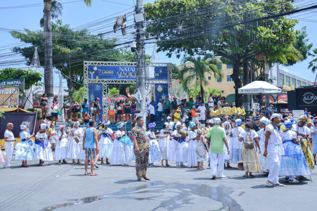 Em uma comitiva conduzida pelas baianas, ao som do berimbau e dos atabaques, moradores de Lauro de Freitas acompanharam o cortejo da 40ª edição da tradicional Lavagem do Largo do Caranguejo, realizada neste domingo (14/12). O evento integrou a programação festiva que movimentou o bairro de Itinga ao longo do fim de semana.