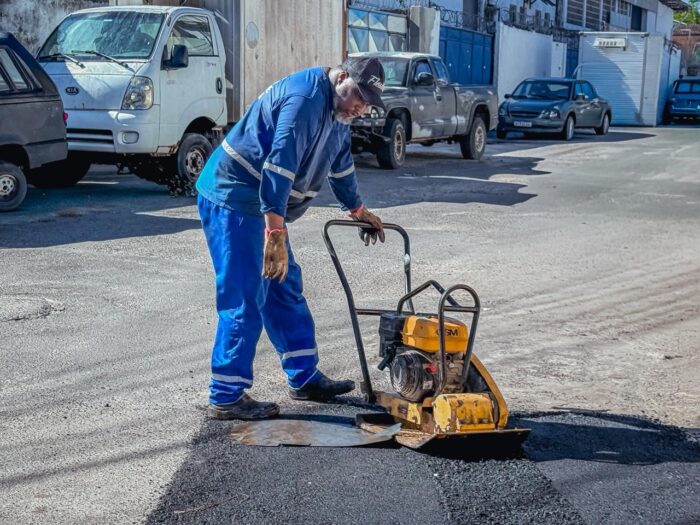 Desta vez, a ação está sendo realizada nos bairros de Itinga, na Rua Santa Bárbara de Cima; e em Portão, na Rua José R. de Santana; onde as equipes executam serviços de recuperação do pavimento, eliminando buracos e melhorando a mobilidade nas vias.