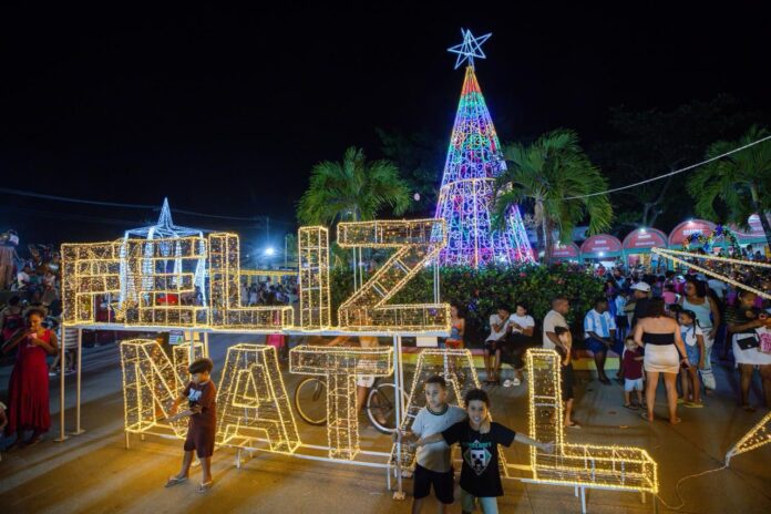 Neste domingo (7/12), a população lotou a Praça do Caranguejo, pulsando em expectativa para acompanhar o lançamento oficial do Natal Mágico, iniciativa da Prefeitura de Lauro de Freitas, por meio da Secretaria Municipal de Cultura, Lazer, Juventude e Esporte (SECULJE), para celebrar o período natalino no município. No bairro de Itinga, o mais populoso da cidade, crianças e famílias inteiras se misturaram ao cenário da festa. Bastaram apenas dez segundos, entoados em coro, para que a escuridão desse lugar à luz. Em um piscar, o espaço ganhou brilho, cores e o sentimento de pertencimento dos moradores.