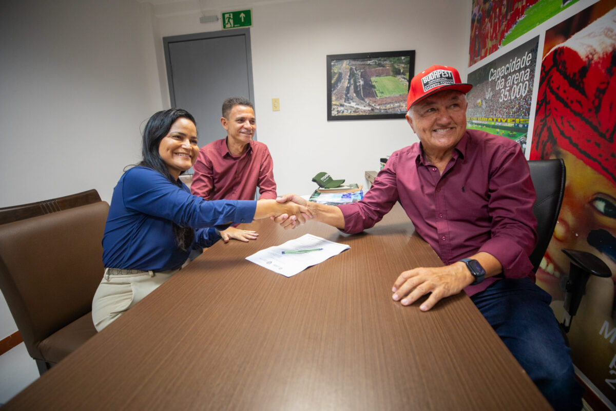 O Termo de Parceria foi assinado pela prefeita Débora Regis; pelo vice-prefeito e secretário Municipal de Cultura, Lazer, Juventude e Esporte (SECULJE), Mateus Reis; e pelo vice-presidente do Vitória, Djalma Abreu. Durante o encontro, Débora reforçou o compromisso da gestão municipal. “Esta parceria fortalece as políticas públicas voltadas ao esporte e à juventude, integrando ações esportivas, realização de eventos, palestras, workshops e oficinas. É um passo importante para oferecer mais oportunidades aos nossos jovens e promover a prática esportiva como ferramenta de transformação social”, explicou.